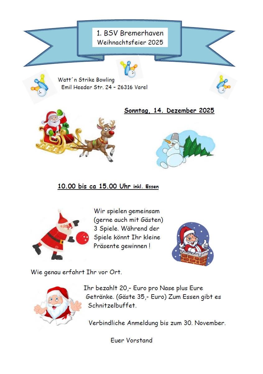 Veranstaltungen / Verein Einladung Weihnachtsfeier 2025 06.10.202506.10.2025 Ihr wollt dabei sein? Anmeldungen bitte direkt an Ulla!